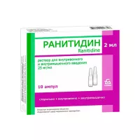 Ранитидин 25 мг/мл раствор для инъекций 2 мл ампулы 10 шт