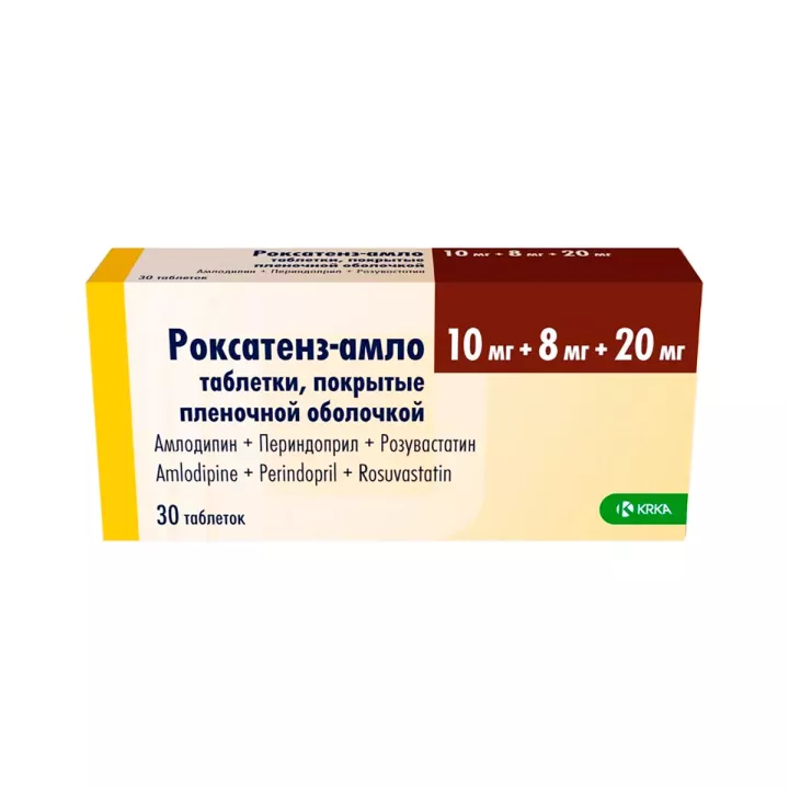 Роксатенз-амло 8 мг+10 мг+20 мг таблетки покрытые пленочной оболочкой 30 шт