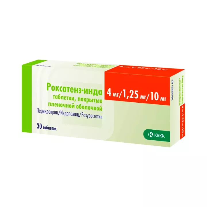 Роксатенз-Инда 4 мг+1,25 мг+10 мг таблетки покрытые пленочной оболочкой 30 шт
