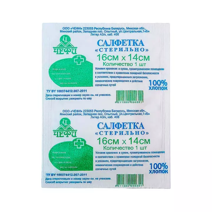Салфетки марлевые медицинские стерильные 16х14 см 1 шт Чефи