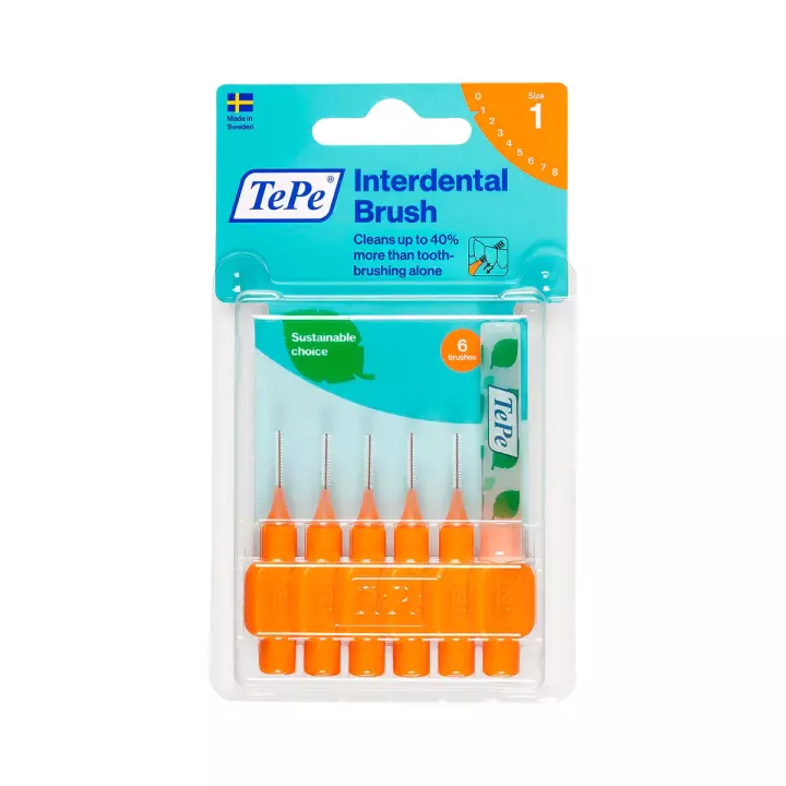 TePe Original - это ершики с маленьким держателем, разработанные для чистки участков между зубами, куда обычная зубная щетка не может добраться. Они сделаны из гибкой металлической проволоки, которая тщательно очищает зубы. При этом каждый стержень покрыт пластиковой защитой, чтобы сделать вашу ежедневную процедуру атравматичной и комфортной. Межзубные ершики TePe Original №1 с диаметром проволки 0,45 ммпредназначены для чистки между зубами и десной плотного зубного ряда.