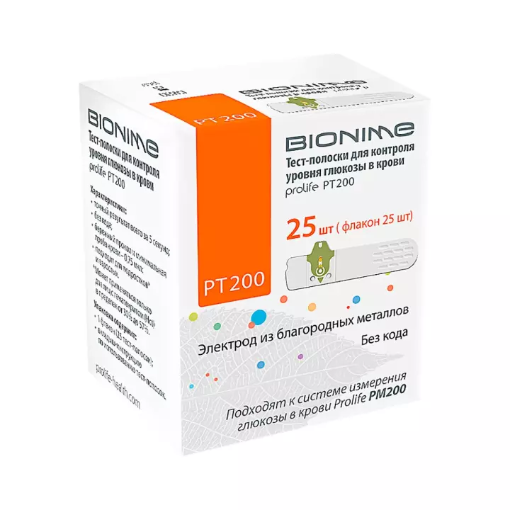 Тест–полоски Prolife PT200 предназначены для использования с глюкометром Prolife PM200. Глюкометр Prolife PM200 – точный и простой в использовании прибор для контроля уровня глюкозы крови.