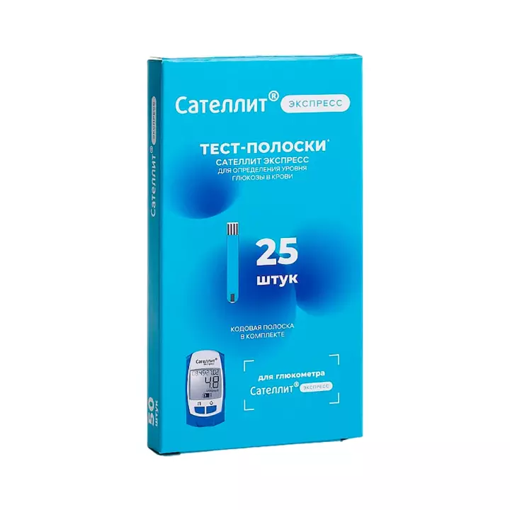 Тест-полоски Сателлит Экспресс для глюкометра Сателлит Экспресс предназначены для точного определения уровня глюкозы в цельной капиллярной крови. Для проведения измерения достаточно всего 1 мкл крови. Результат измерения за 7 секунд. Каждая тест-полоска упакована индивидуально.