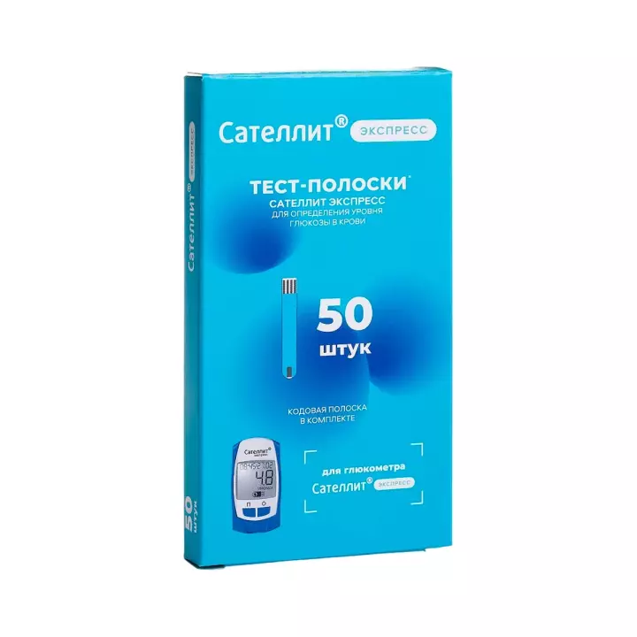 Тест-полоски Сателлит Экспресс для глюкометра Сателлит Экспресс предназначены для точного определения уровня глюкозы в цельной капиллярной крови. Для проведения измерения достаточно всего 1 мкл крови. Результат измерения за 7 секунд. Каждая тест-полоска упакована индивидуально.