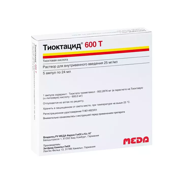 Тиоктацид 600 T 25 мг/мл раствор для внутривенного введения 24 мл ампулы 5 шт