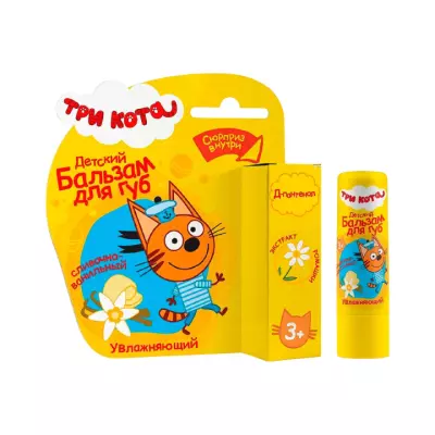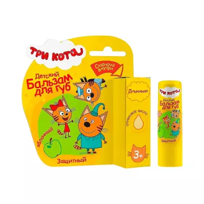 Три кота детский бальзам для губ гипоаллергенный малиновый 4,2 г 1 шт