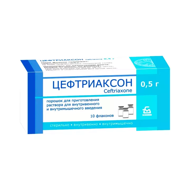 Цефтриаксон 0,5 г порошок для приготовления раствора для инъекций флакон 10 шт