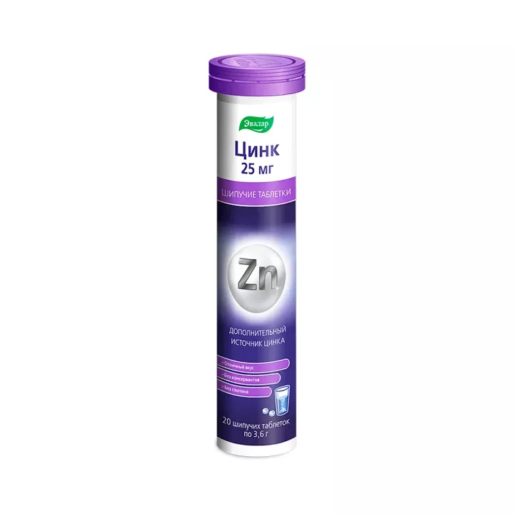 Цинк 25 мг таблетки шипучие 20 шт Эвалар