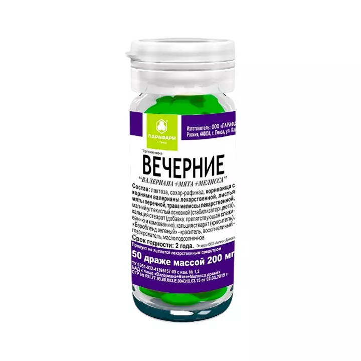 Валериана+Мята+Мелисса драже 200 мг 50 шт Парафарм