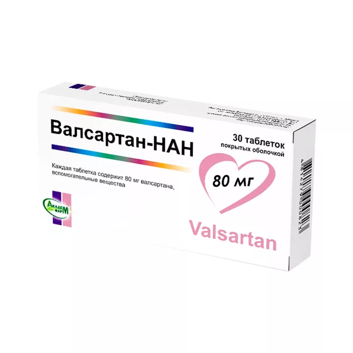 Валсартан-НАН 80 мг таблетки покрытые оболочкой 30 шт