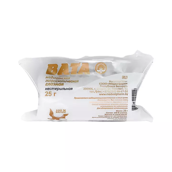 | Форма выпуска | Вата глазная нестерильная |