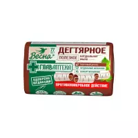 Мыло туалетное твердое Весна Дегтярное - природная помощь для профилактики кожных недугов. В состав дегтяного мыла входит натуральный березовый деготь, который обладает дезинфицирующим свойством, а также способствует быстрому заживлению ран, ссадин, экзем и кожных повреждений. Не содержит искусственных красителей.