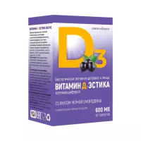 Витамин Д3 Эстика 600 МЕ черная смородина таблетки диспергируемые в полости рта 200 мг 90 шт Фортива Мед