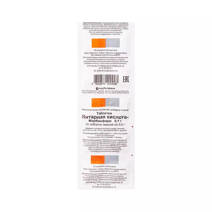 Янтарная кислота 100 мг таблетки 10 шт Марбиофарм