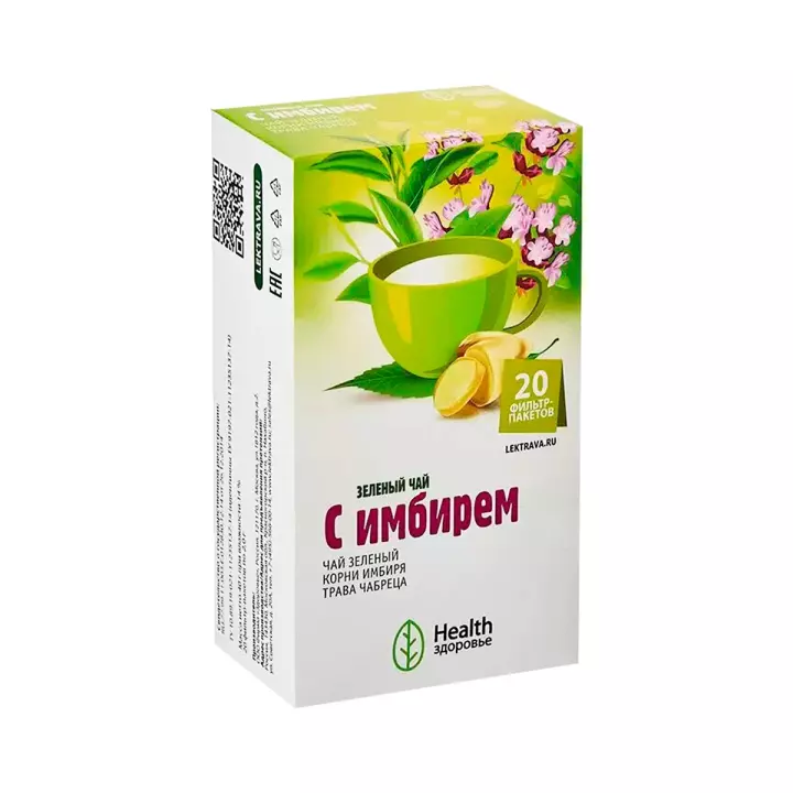 Зеленый чай с имбирем 2 г фильтр-пакет 20 шт Здоровье Health